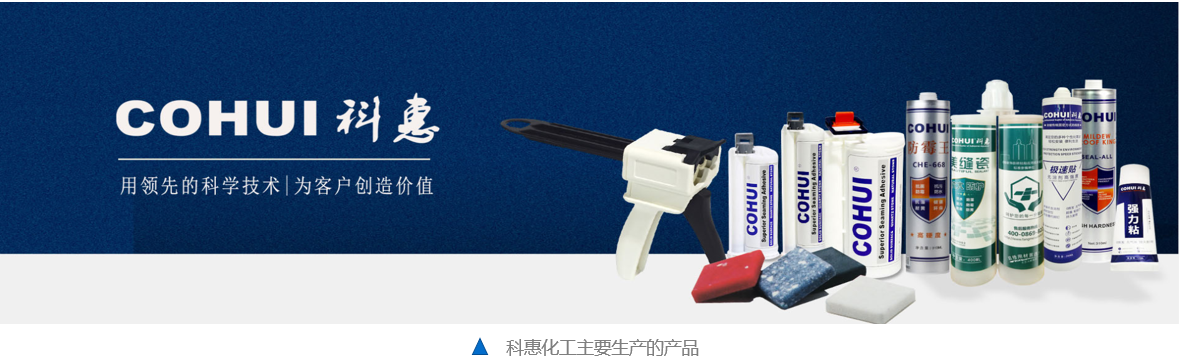科惠公司主要生产工业材料胶水、厨卫防霉胶、岩板/陶瓷胶、美缝瓷、人造石石英石安装胶等工业胶水,其产品广泛适用于工业建材行业。